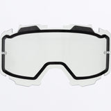 • Low-rise, no vents, dual-pane, impact-resistant, pre-curved polycarbonate snow lens